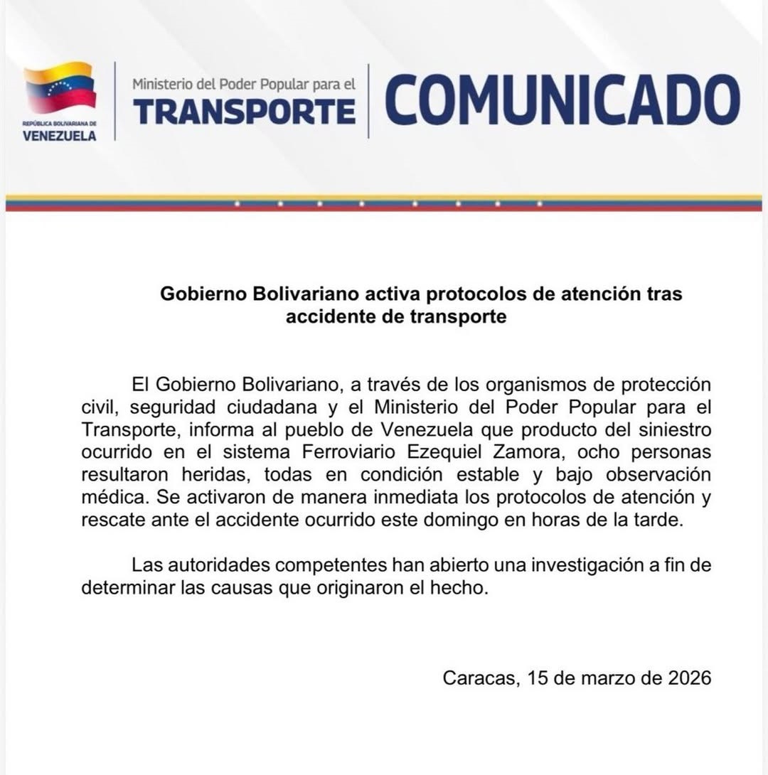 El Gobierno, a través de los organismos de Protección Civil, seguridad ciudadana y el Ministerio del Poder Popular para el Transporte, activó este domingo los protocolos de atención y rescate ante el accidente ferroviario registrado, en horas de la tarde, en el sistema Ezequiel Zamora.