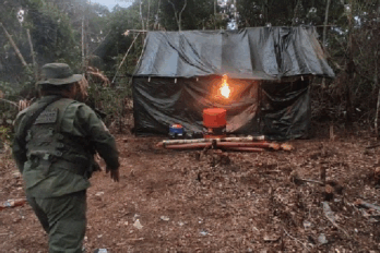El campamento estaba oculto en el sector Mina Vieja del estado Amazonas. Se encontraron 200 litros de gasoil y material minero.