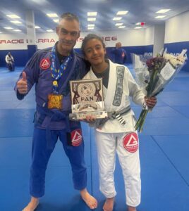 “Empecé a incursionar en el Jiu-Jitsu, inmediatamente yo le dije a mi hija ven y prueba acá a ver si te gusta, y ella empezó a entrenar conmigo (…). Ha representado muchísimas veces a Venezuela. Ha sido campeona mundial ya en dos oportunidades”, recuerda Delgado.