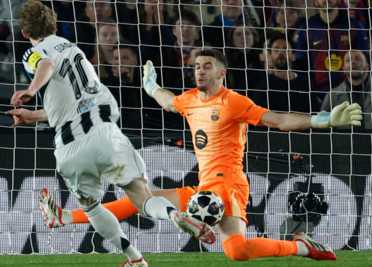 Ante el Newcastle en el Camp Nou en el segundo partido de la eliminatoria, el portero azulgrana tuvo que pedir el cambio al minuto 80, luego de embolsar un remate de Harvey Barnes sin ninguna complejidad.