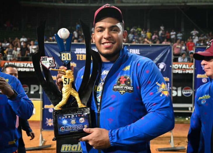 Leandro Centeno, jugador de Navegantes del Magallanes, ganó el Premio Robert Pérez al Jugador Más Valioso (MVP, por sus siglas en inglés) de la Gran Final 2025-2026 de la Liga Venezolana de Béisbol Profesional (Lvbp), tras su actuación en la victoria 14-6 ante Caribes de Anzoátegui en Puerto La Cruz que derivó en el título número 14 de la nave turca.
