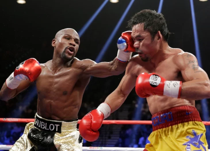 El primer enfrentamiento entre ambos ocurrió más de un lustro después de que los aficionados empezaran a reclamar a gritos un emparejamiento evidente entre dos grandes de tamaño similar. En distintos momentos, ambos bandos culparon al otro por la demora, pero Mayweather siempre sostuvo que pelearía con quien quisiera, cuando quisiera, lo que llevó a muchos aficionados a sentir que Mayweather esperó para aceptar el combate hasta que consideró que la edad le había quitado algo de filo a los famosos y feroces golpes de Pacquiao.
