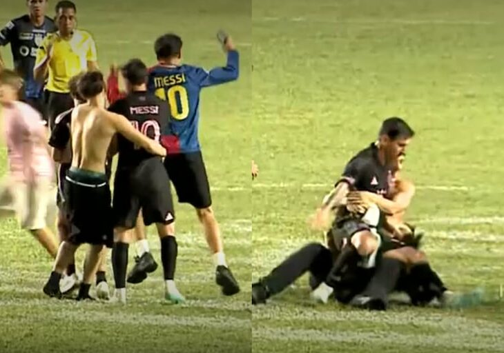 El encuentro fue interrumpido cuando un hombre sin camisa corrió por el campo e intentó abrazar al deportista. Un video muestra al sujeto entrar a la cancha, al mismo tiempo que era perseguido por un guardia. El intruso logró evadir a la seguridad lo suficiente para llegar hasta donde estaba el argentino para abrazarlo por la espalda.