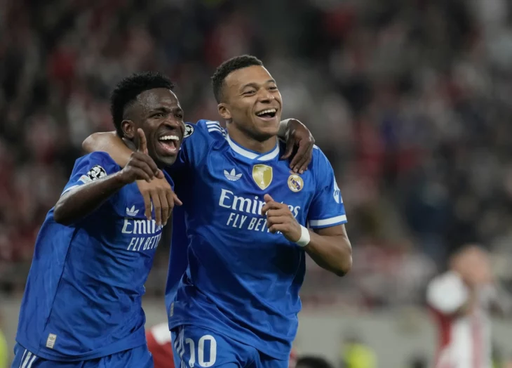 A los 26 años, Mbappé anotó tres veces para el Real Madrid entre los 22 y 29 minutos, y nuevamente al 60 de la victoria 4-3 ante Olympiakos.