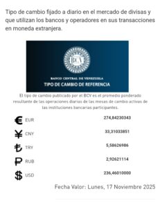 Estos valores son utilizados como referencia obligatoria por las instituciones financieras y casas de cambio en Venezuela.