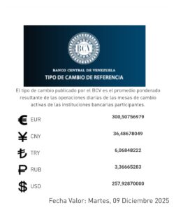 El Blanco Central de Venezuela (BCV) actualizó las tasas cambiarias.