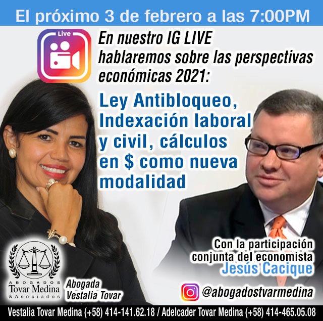 La ponencia de Tovar y Casique iniciará a las 7:00 p.m., por la cuenta en la cuenta de Instagram @abogadostovarmedina.