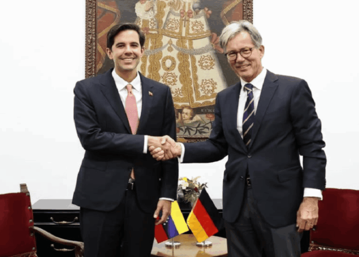 El viceministro para Europa y América del Norte, Oliver Blanco, sostuvo recientemente una reunión con el embajador de Alemania en Venezuela, Volker Pellet, en la que abordaron diversas oportunidades de cooperación bilateral, con especial énfasis en las áreas de energía, cultura y turismo.