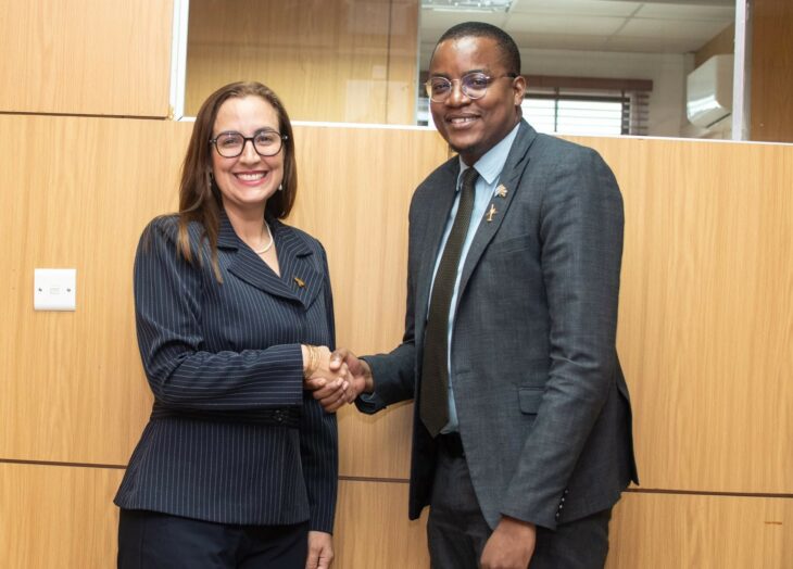 En un ambiente de gran cordialidad, respeto mutuo y profundo espíritu de cooperación Sur–Sur, la embajadora de la República Bolivariana de Venezuela acreditada ante la República de Botsuana, Magaly Henríquez, sostuvo una reunión con el viceministro del Ministerio de Transporte e Infraestructura, Keoagile Keo Atamelang.