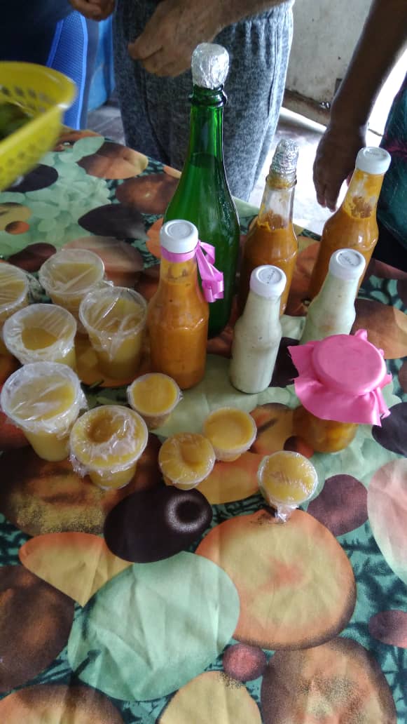 Se alejan de los químicos, prefieren agregar azúcar, papelón y limón si necesitan emplear conservantes. Hacen el vinagre y el vino. “Gracias a la profesora Dilia de Lanz que fue la que nos dio el taller de elaboración de alimentos. Recuerda que la primera feria que hubo aquí en Ciudad Guayana fue en el Parque La Fundación con la profesora Dilia que luego vino a El Rosario y nos dio el taller. Somos las pioneras de Caroní y de la parroquia Yocoima”, rememora.