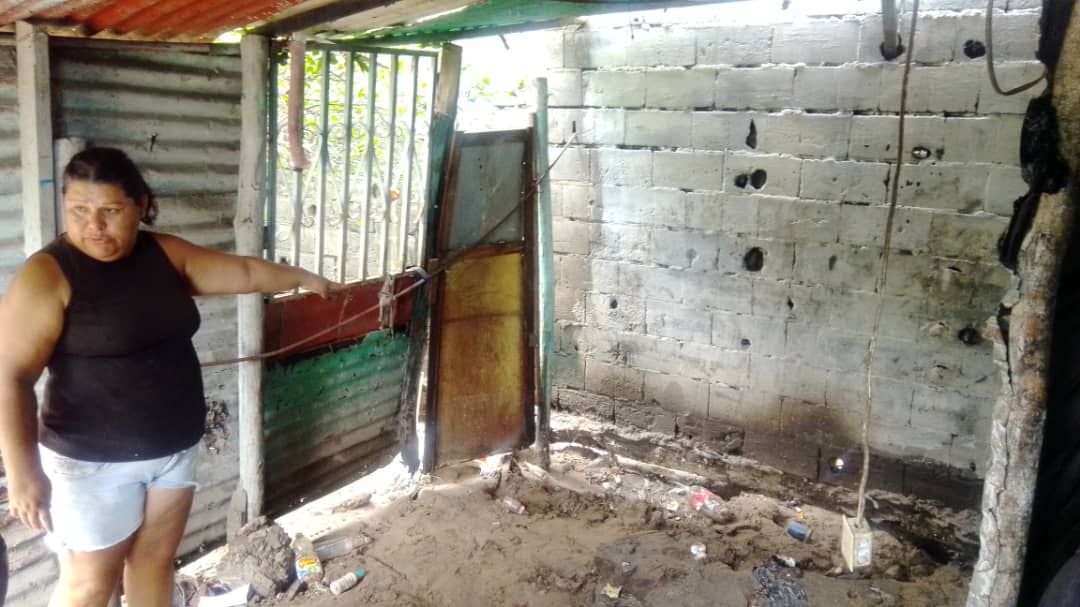 Yusleidis Palomo, vecina del sector, comentó que el aguacero “arrasó” con todas sus pertenencias, “comenzó con el desprendimiento de la cerca, eso fue lo que hizo que la lluvia entrara; quedamos sin nada, la ropa, los corotos, los colchones, todo eso se me fue”.