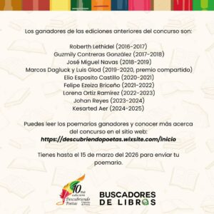 El plazo de entrega de los poemarios está abierto hasta el 15 de marzo del 2026 y el veredicto será publicado el 23 de abril, Día Internacional del Libro y del Idioma. Las obras participantes deben ser inéditas.