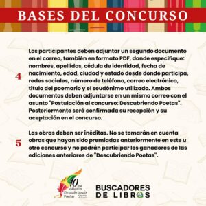 Para mayor información, disponen la cuenta de Instagram @Buscandolibros y @Descubriendopoetas.