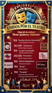 De acuerdo con la agenda compartida, la jornada llamada “Unidos por el teatro” incluirá la presentación de micros, danza y danza-teatro de parte de diferentes agrupaciones locales.