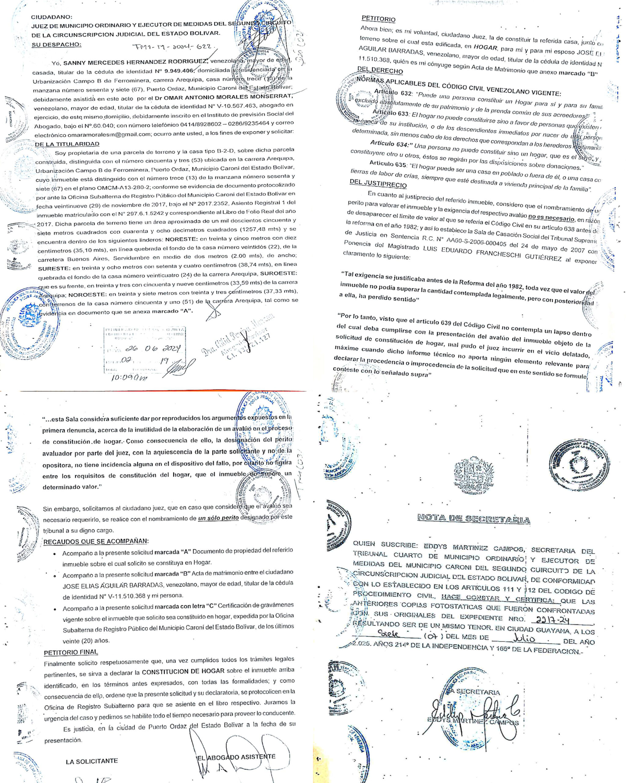 Dictada por el TRIBUNAL CUARTO DE MUNICIPO ORDINARIO Y EJECUTOR DE MEDIDAS DEL MUNICIPIO CARONÍ DEL SEGUNDO CIRCUITO DE LA CIRCUNSCRIPCIÓN JUDICIAL DEL ESTADO BOLÍVAR.