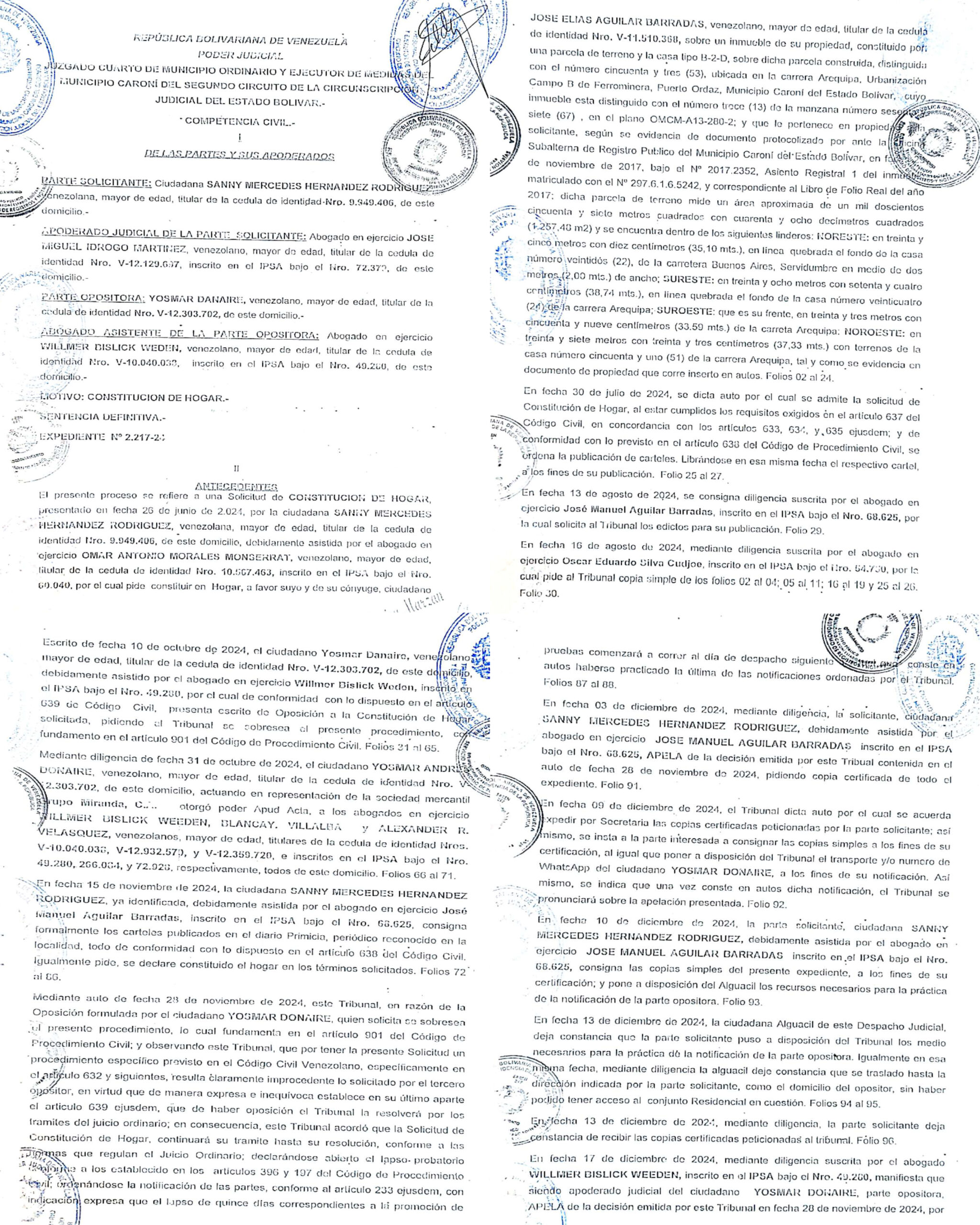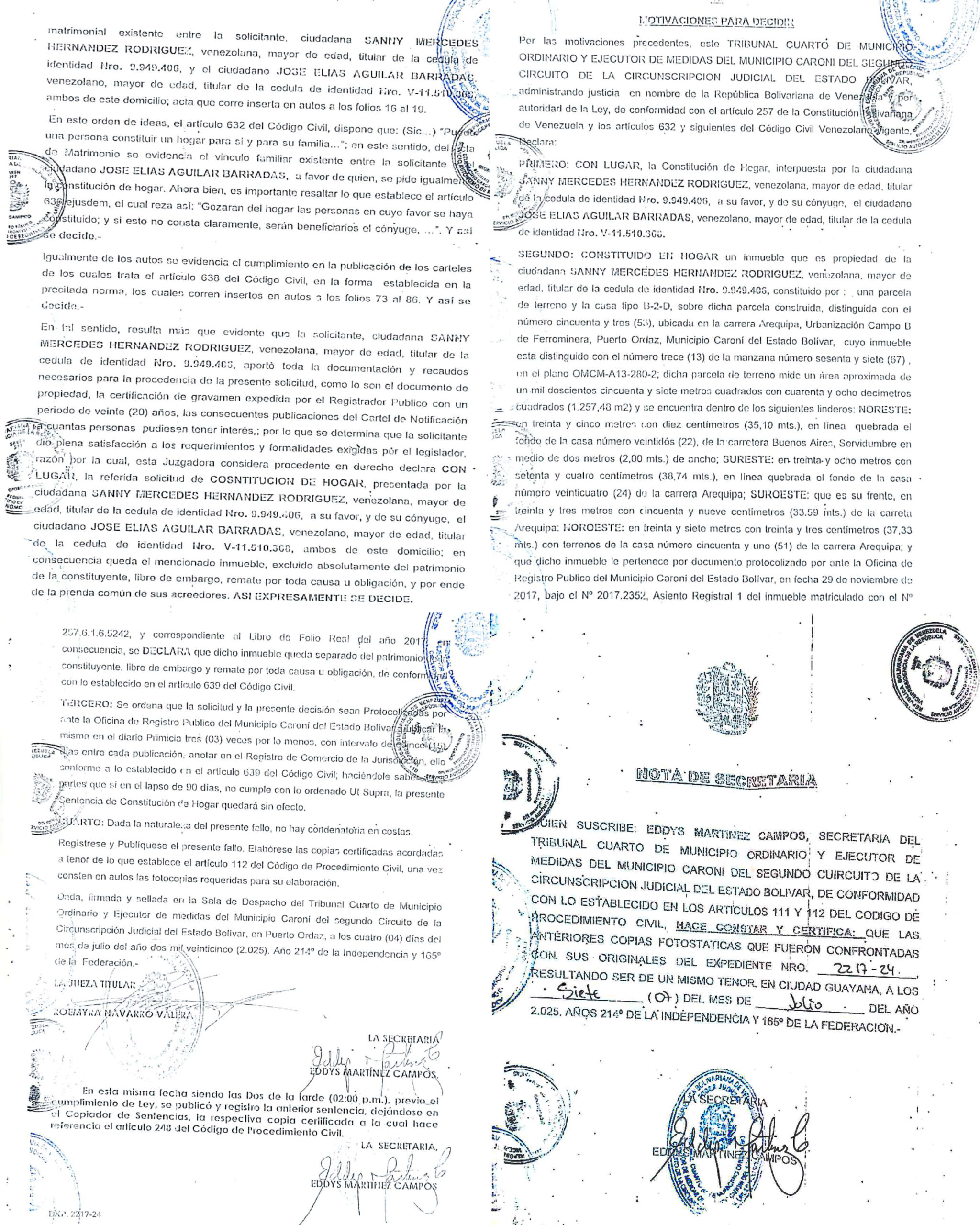 Dictada por el TRIBUNAL CUARTO DE MUNICIPO ORDINARIO Y EJECUTOR DE MEDIDAS DEL MUNICIPIO CARONÍ DEL SEGUNDO CIRCUITO DE LA CIRCUNSCRIPCIÓN JUDICIAL DEL ESTADO BOLÍVAR.