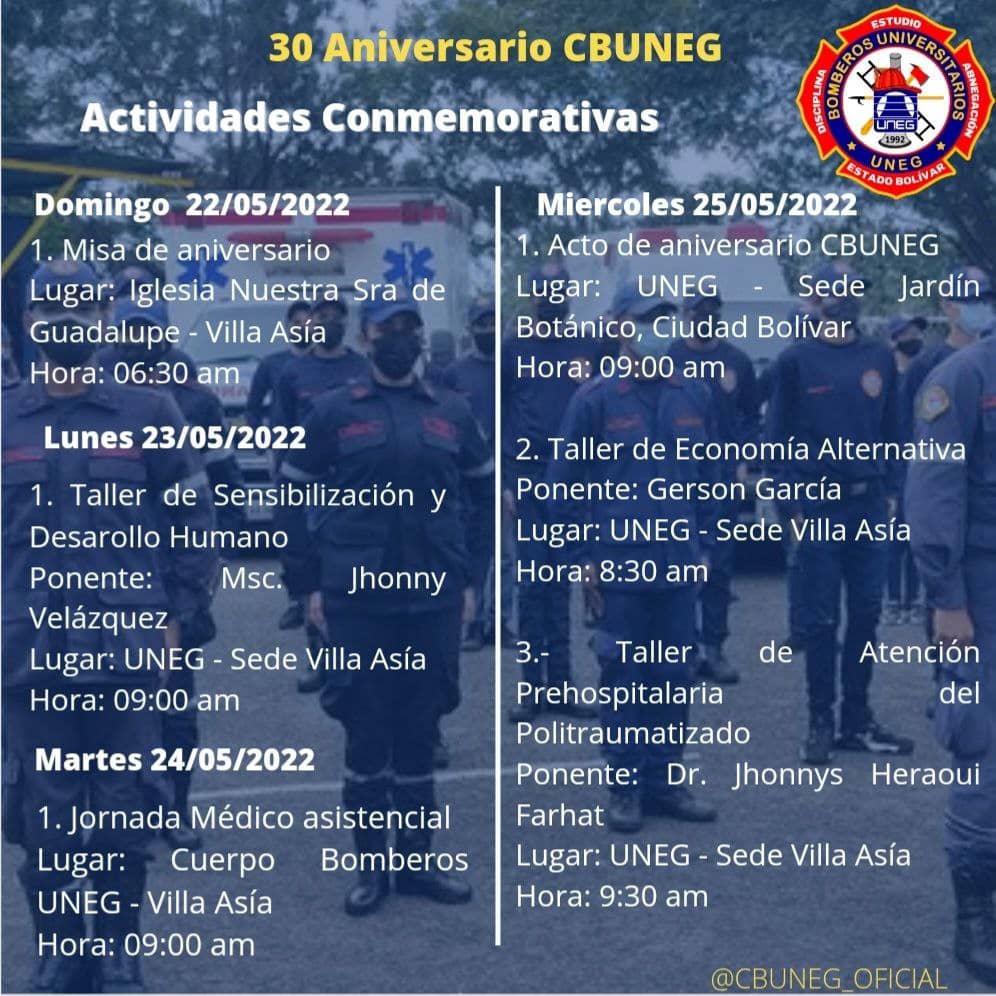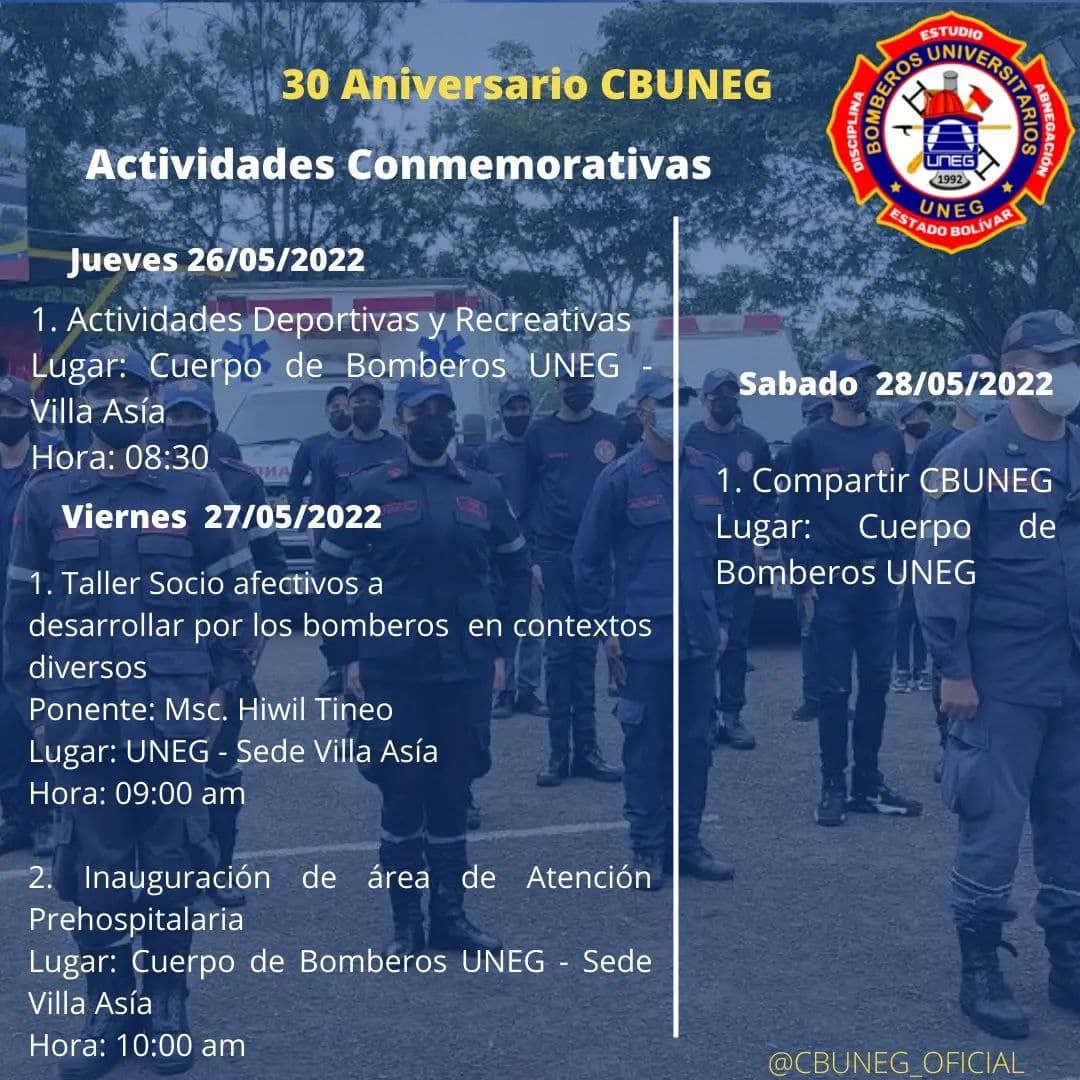 Las actividades en la agenda del trigésimo aniversario de Bomberos Universitarios de la Uneg continuaron este martes con una jornada médico asistencial en la sede de Villa Asia de Puerto Ordaz.