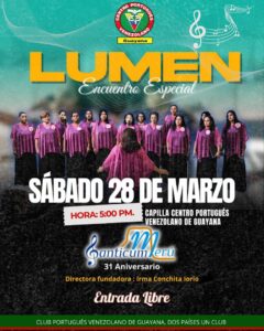Bajo la dirección de la profesora Irma Iorio, el concierto propone un diálogo entre el misticismo europeo y las expresiones contemporáneas de América. La cita será a las 5:00 de la tarde en la capilla del Centro Portugués Venezolano de Guayana.