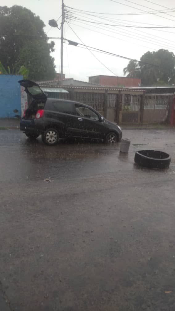 Vecinos de la calle Juan Vicente Gómez en Los Sabanales de San Félix informaron que, debido a las fuertes lluvias, este miércoles un conductor no vio uno de los huecos de la vía y quedando el carro atrapado en el hoyo. Precisaron que el colapso de la tubería de aguas servidas deterioró el pavimento y estas son las consecuencias.
