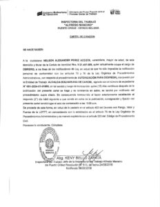 Al ciudadano: NELSON ALEXANDER PÉREZ ACOSTA, venezolano, mayor de edad, de este domicilio y titular de la Cédula de Identidad Nro. V-21.497.689, quien actualmente ocupa el cargo de OBRERO, a los fines de las notificaciones de Ley, en virtud de que ha sido imposible la notificación personal de conformidad con los artículos 75 y 76 de la Ley Orgánica de Procedimientos Administrativos, con respecto al procedimiento de AUTORIZACIÓN PARA DESPEDIR, interpuesto por la Entidad de Trabajo: ALCALDIA BOLIVARIANA DE CARONI, signado con el número de expediente N° 051-2024-01-01886, en tal sentido y luego de transcurrido quince (15) días continuos después de la publicación del presente cartel se haga y su constancia en autos, se tendrá por notificado del procedimiento supra citado. En consecuencia transcurrido el lapso anteriormente establecido al segundo (2do) día hábil siguiente a que conste en autos de la publicación, consignación y fijación del presente cartel tendrá lugar el acto de contestación a las 10:00 a.m.