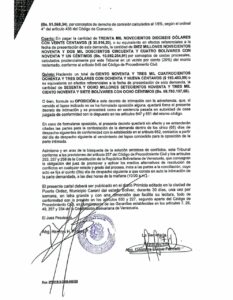Quinto: Haciendo un total de CIENTO NOVENTA Y TRES MIL CUATROCIENTOS OCHENTA Y TRES DÓLARES CON OCHENTA Y NUEVA CENTAVOS ($ 193.483,89) ο su equivalente en efectos referenciales a la fecha de presentación de esta demanda, la cantidad de SESENTA Y OCHO MILLONES SETECIENTOS NOVENTA Y TRES MIL CIENTO NOVENTA Y SIETE BOLÍVARES CON OCHO CÉNTIMOS (Bs. 68.793.197,08).