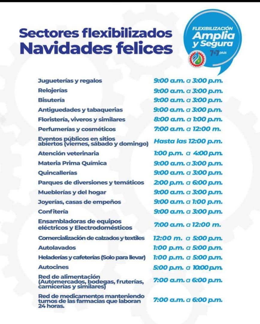 Conozca los horarios de flexibilización por sector en diciembre