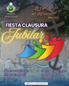 Bajo el lema bíblico “La esperanza no defrauda” (Rom 5,5), la Diócesis invita a los fieles a participar en este cierre jubilar como expresión de gratitud y como punto de partida para seguir llevando el mensaje de Cristo a cada rincón de Ciudad Guayana.