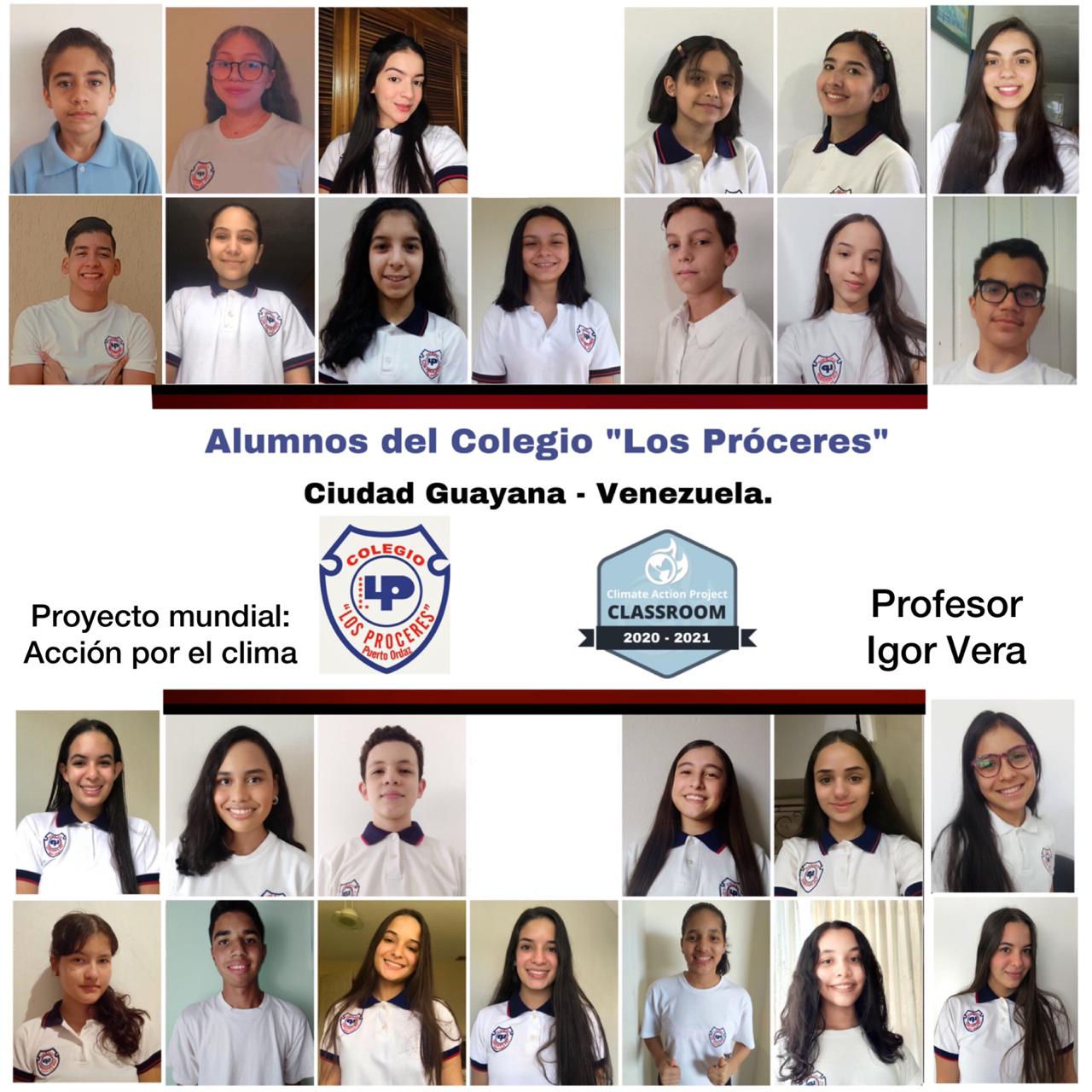 El Colegio Los Próceres, ubicado en Puerto Ordaz, seleccionó a 26 estudiantes de primero a quinto año de bachillerato, bajo la dirección y coordinación del profesor Igor Vera, para participar en el “Proyecto de la Acción por el Clima”, junto a 10 mil escuelas en todo el mundo.