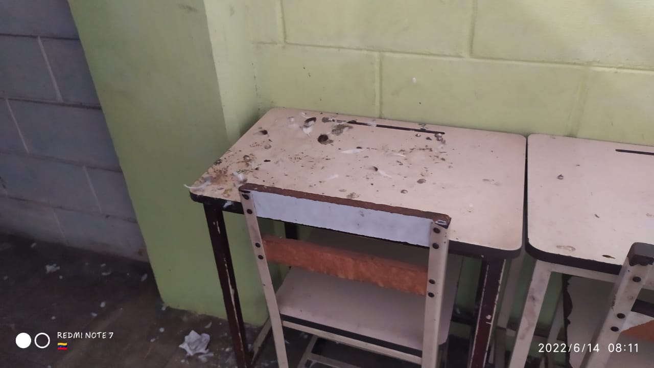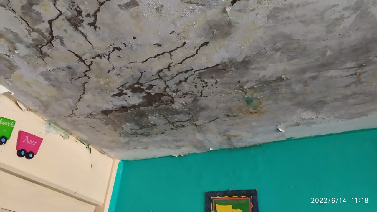Una trabajadora de la institución -quien protegió su identidad- indicó que la situación de la escuela es bastante alarmante: “Las maestras tienen que estar sacando agua de los salones y pierden media mañana sin dar clases; el techo y las paredes están agrietadas por varias partes, ya los niños no pueden ver clases porque caen las gotas del techo platabanda, hasta las pizarras están húmedas. La pintura está horrible, hay palomas en cantidades que están apoderadas de muchos espacios de la institución”. Por si fuera poco, hay problemas con la instalación eléctrica.