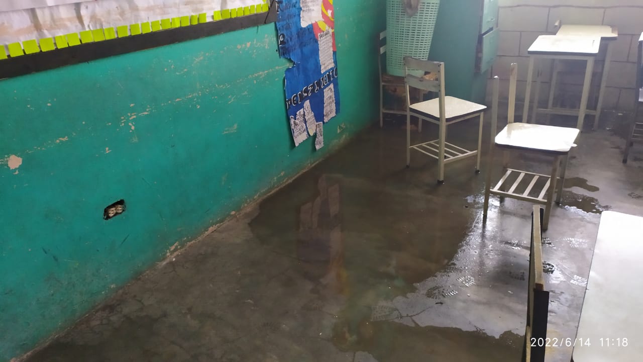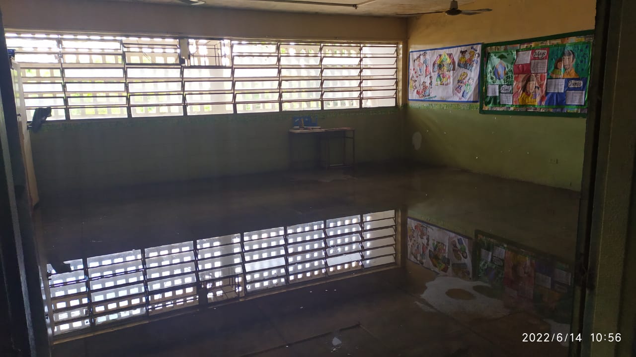 Casi todo el techo de la U.E.N Simón Rodríguez, ubicada en el sector Primero de Mayo de San Félix, tiene filtraciones y los salones se inundan por completo. Es así como las maestras pasan casi toda la mañana sacando agua; según la denuncia de los miembros de la comunidad educativa.