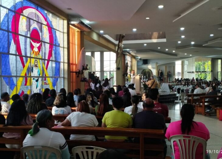 La eucaristía fue presidida por el padre Manuel Díaz, párroco de la iglesia procatedral Nuestra Señora de Fátima y vicario episcopal para la pastoral de la Diócesis de Ciudad Guayana, quien expresó su alegría por este acontecimiento que marca un hito en la fe del país.