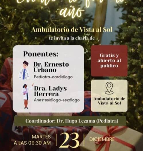 Con el objetivo de seguir fomentando las buenas prácticas médicas, este próximo martes 23 de diciembre se llevará a cabo una charla informativa en los espacios del Ambulatorio Vista Al Sol, en San Félix.