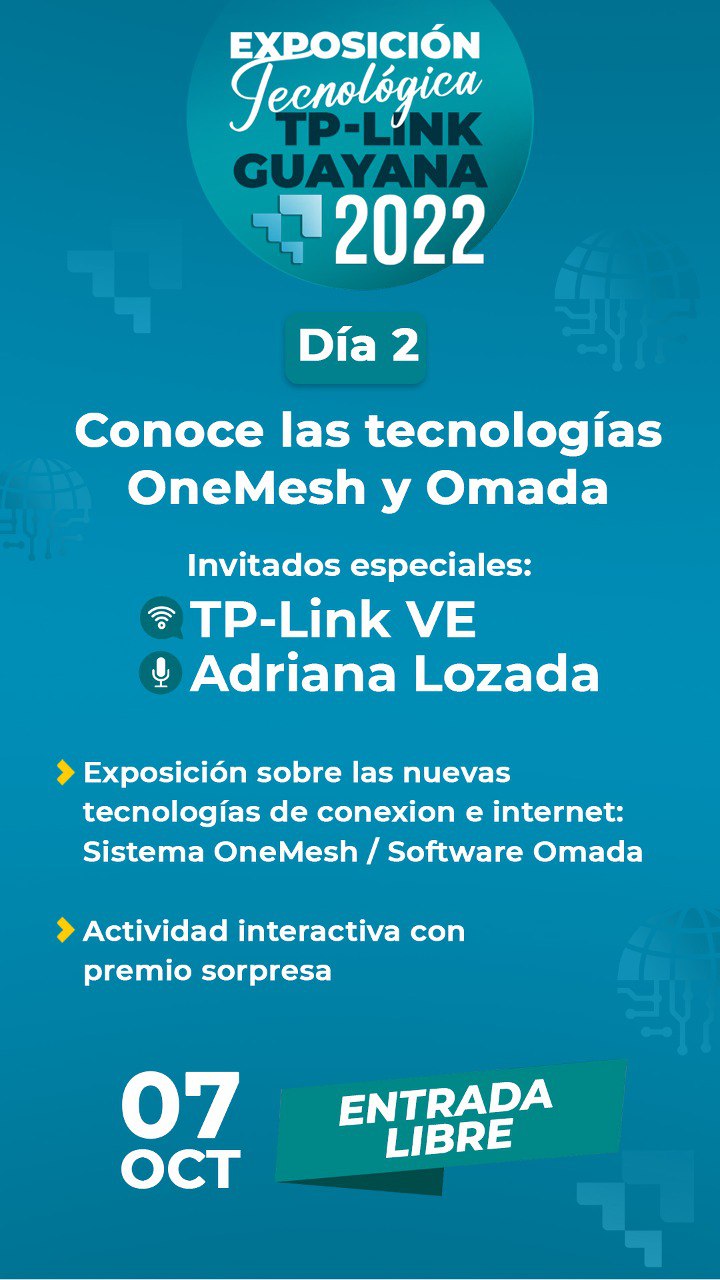 El segundo día, los asistentes tendrán la oportunidad de conocer las nuevas tecnologías (Mesh y Omada) con el equipo de TpLink Guayana y la locutora Adriana Lozada.