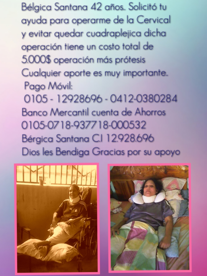 Santana aseveró que, por la larga espera, ya no puede mover su brazo ni pierna izquierda, está limitada al uso de un collarín, además sufre de convulsiones.