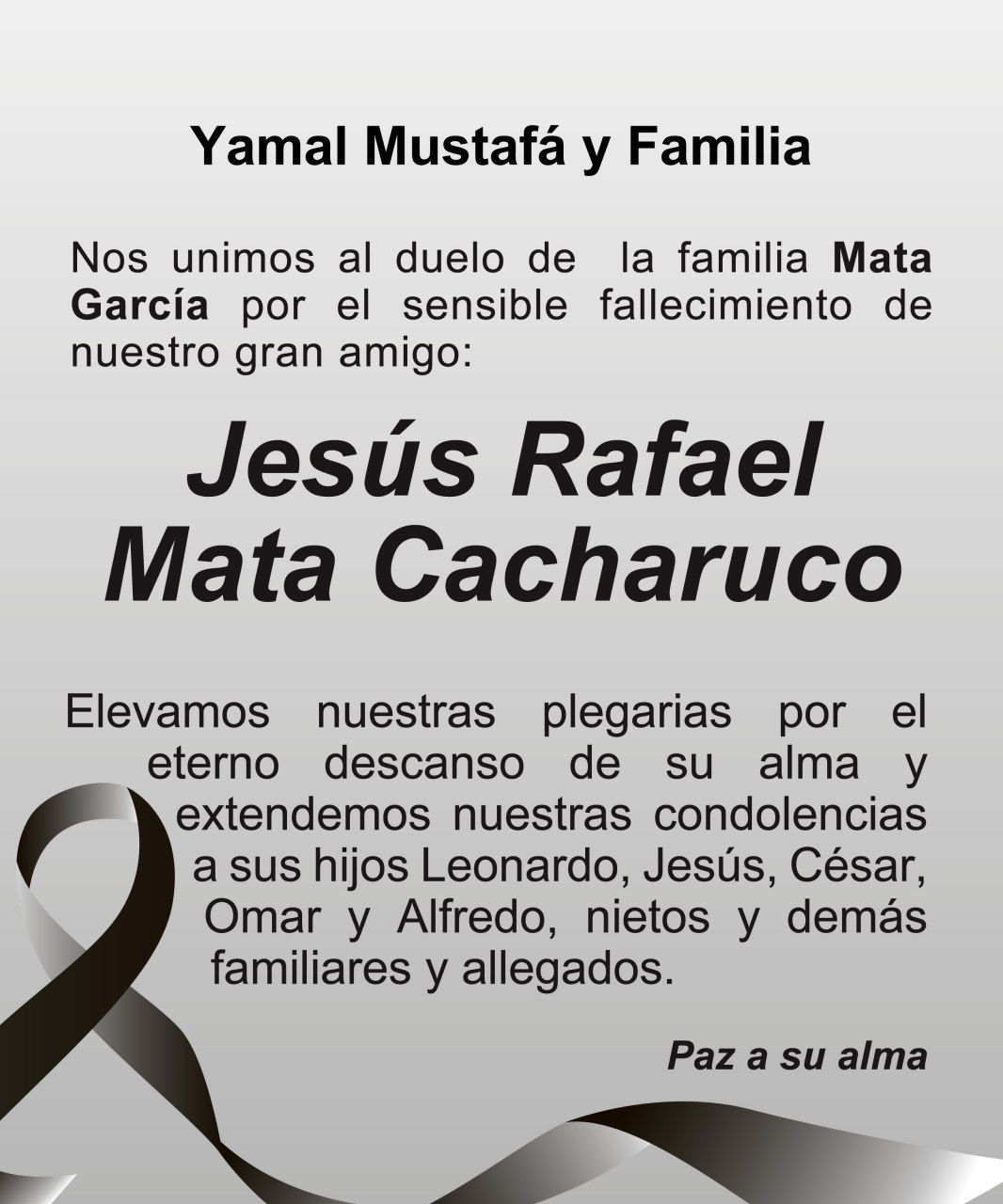 Nos unimos al duelo de la familia Mata García por el sensible fallecimiento de nuestro gran amigo: