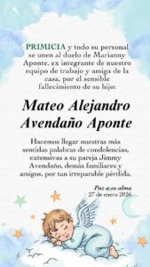 PRIMICIA y todo su personal se unen al duelo de Marianny Aponte, ex integrante de nuestro equipo de trabajo y amiga de la casa, por el sensible fallecimiento de su hijo: