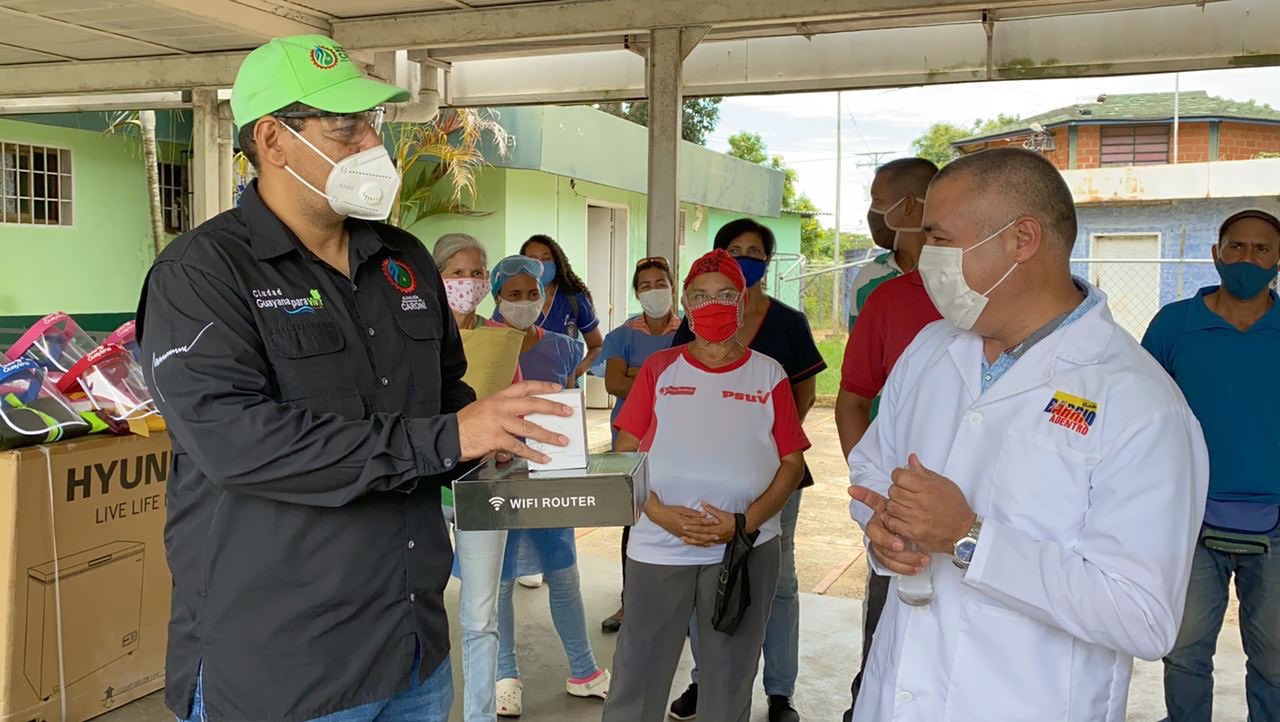 Oviedo, estuvo acompañado de Adán Villavicencio, jefe de la Misión Médica Cubana en Bolívar, de la secretaria de Gestión Social Municipal, vencedora del covid-19, Roselys Salazar, y del concejal Óscar Rivas, paciente recuperado del virus.