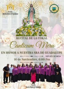 Este 16 de noviembre, al terminar la misa, será presentado un recital dedicado a la virgen con las voces de la coral femenina Canticum Merú.