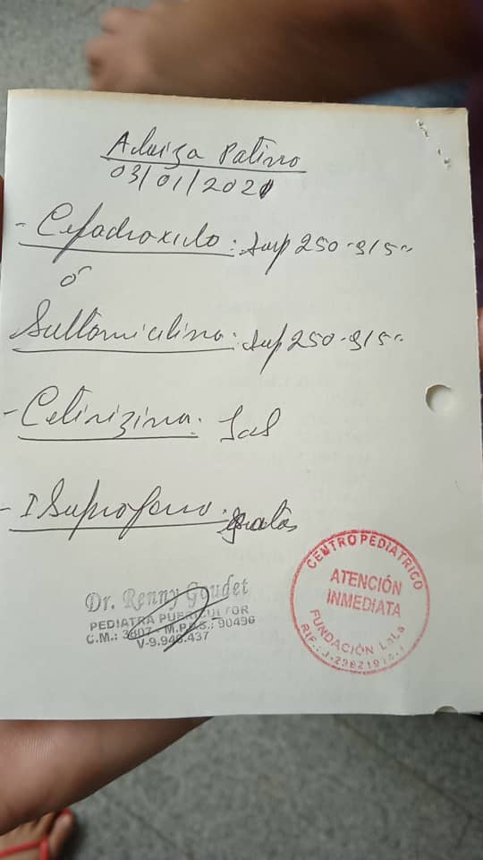 Comentó que al trasladarse al Hospital Uyapar, este miércoles, no encontraron un médico pediatra que atendiera a su hija; finalmente la evaluó un epidemiólogo quien diagnosticó que a Alayza la picó una araña, pero no contaban con el medicamento en el centro hospitalario y sugirieron el hospital Ruiz y Páez en Ciudad Bolívar.