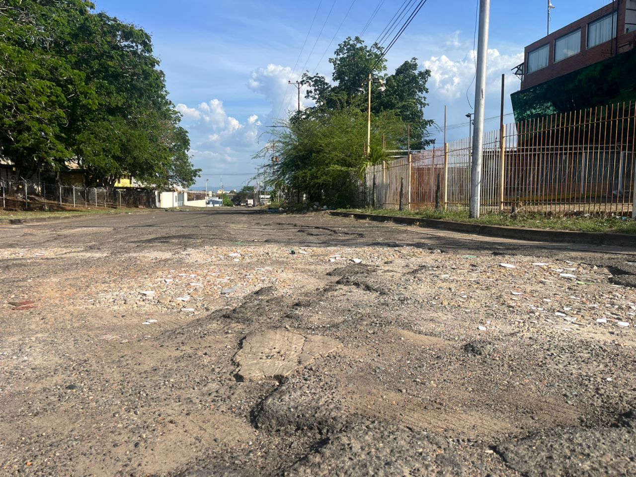 En la zona industrial Unare, adyacente a una reconocida funeraria, es casi imposible transitar por la cantidad de cráteres.