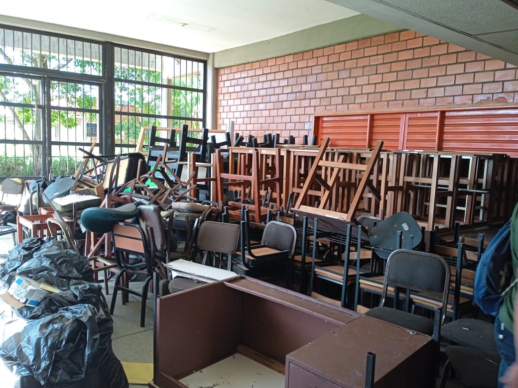 Un año ante de la pandemia por covid-19, se había cerrado la sede, y dos años después de la pandemia la institución se encuentra totalmente saqueada, “se robaron los aires acondicionados, los laboratorios, equipos de computación, repuesto de los autobuses, sillas mesas”, dijo el presidente de la asociación de profesores.