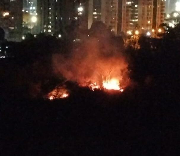 Ciudadanos reportan un incendio forestal en las torres Grand Palms, sector de Alta Vista, Puerto Ordaz.