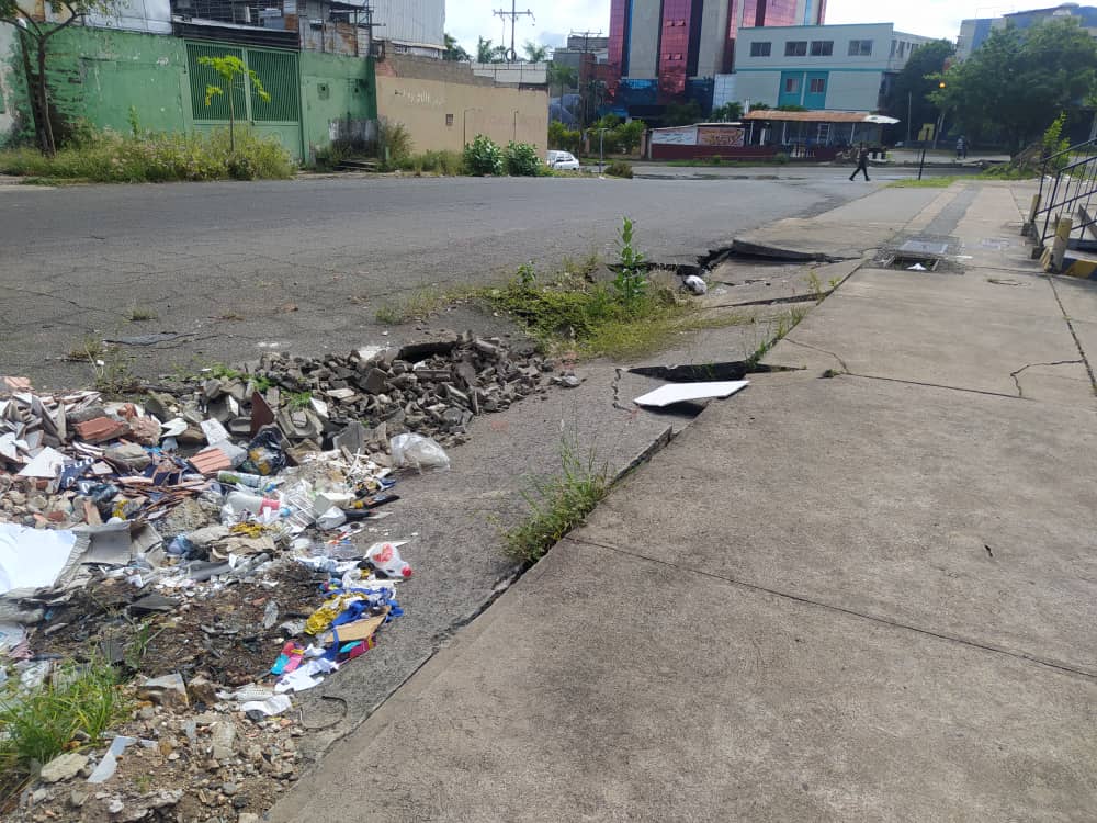 Diagonal a la cloaca se une una cárcava que tampoco fue solucionada. Es preciso recordar que el pasado 10 de julio de 2021, los comerciantes de la zona solicitaron apoyo ante el riesgo que representaba el desplome de la carretera y quedar en exposición la tubería de gas. Hoy PRIMICIA constató que el sitio solo fue cubierto con escombros.