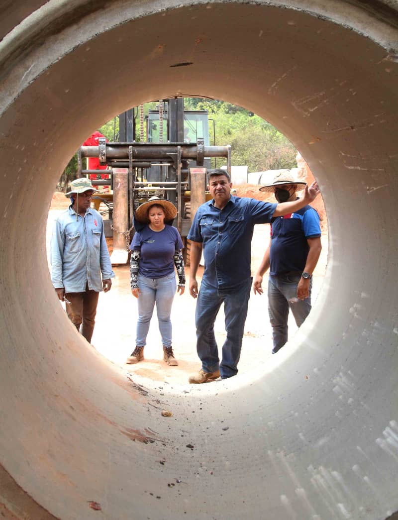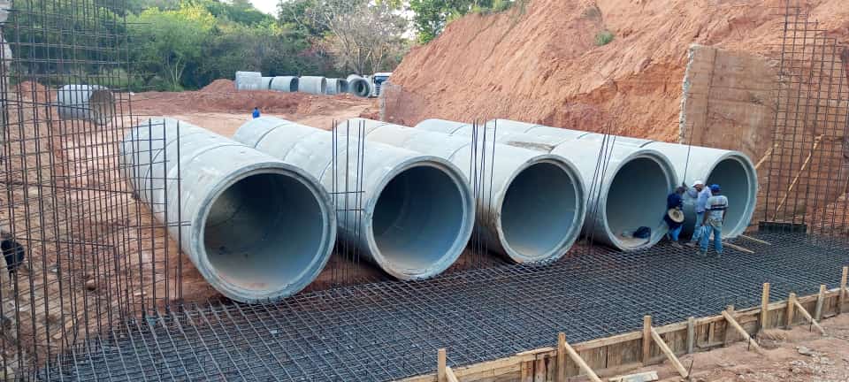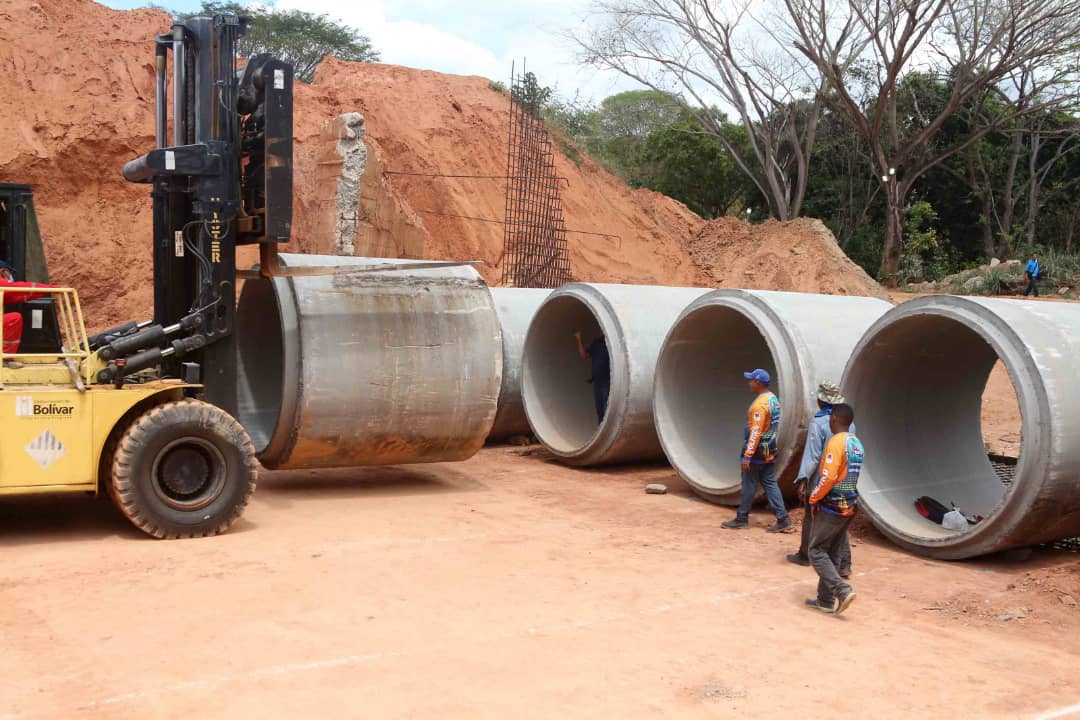 Otros trabajos contemplan la colocación del acero de las aletas del cabezal, para su posterior vaciado de concreto, completando de manera satisfactoria la fase de armado, y proseguir con la instalación de la batería de tubos. En total serán 100 tubos de concreto que tendrá el Puente Sucre para darle mayor canalización y evitar afecciones en la infraestructura.