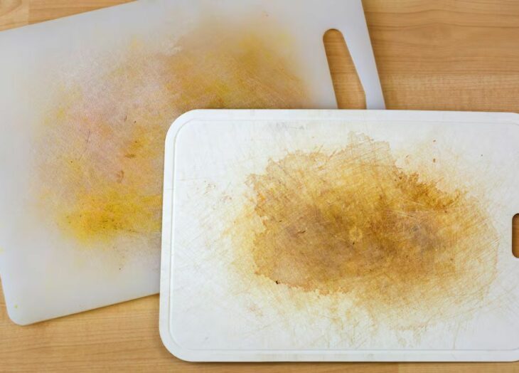 Cada vez que debemos cortar un alimento usamos una tabla de madera o de plástico. Ambos tipos de tablas se limpian con facilidad, pero en el caso de las de plástico cuesta retirar las manchas que provocan los diversos ingredientes, sobre todo si la misma es de color blanco.