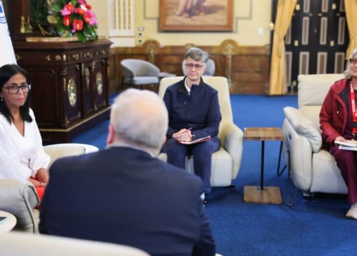 La presidenta encargada, Delcy Rodríguez, sostuvo este miércoles un encuentro de trabajo en el Palacio de Miraflores con el representante de la OPS/OMS en Venezuela, Armando De Negri Filho, en el inicio del Plan Nacional de Vacunación.