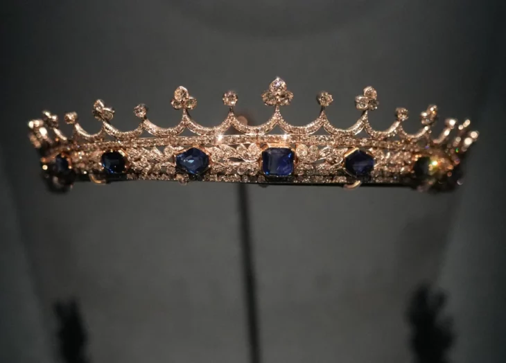 Repartida en cuatro galerías, la exhibición despliega más de 100 piezas que deslumbran tanto por su brillo como por su escala. Sus objetos provienen de la Colección Al Thani, el Museo Victoria y Alberto, y prestamistas importantes, incluidos el rey Carlos III, el Duque de Fife, Cartier, Chaumet y las propias colecciones nacionales de Francia.