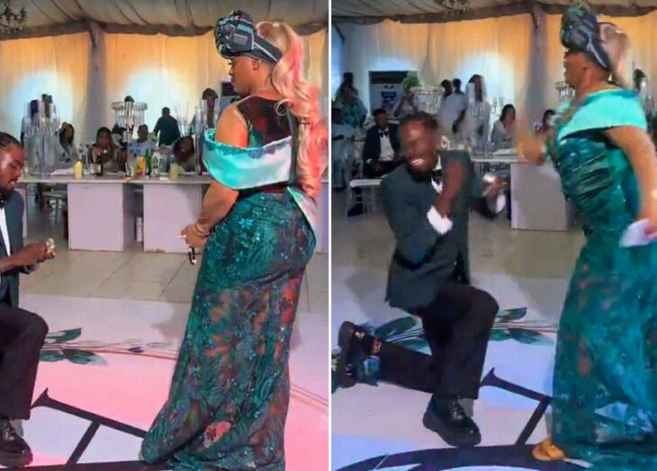 En un dramático video que se ha hecho viral, se ve a un joven nigeriano hincarse para sorprender a su novia con una propuesta de matrimonio cuando esta se diera la vuelta.