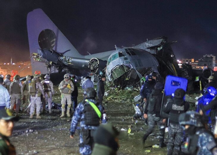 El avión Hércules (C-130), que transportaba dinero del Banco Central de Bolivia, intentó aterrizar en la pista, pero se salió y arrastró vehículos mientras avanzaba casi un kilómetro.