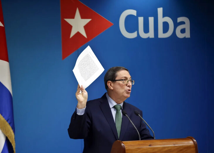 “Reitera la conducta de total irrespeto y violación del Derecho Internacional, el Derecho Marítimo y la libertad de navegación y comercio”, escribió el ministro cubano en su cuenta de X.